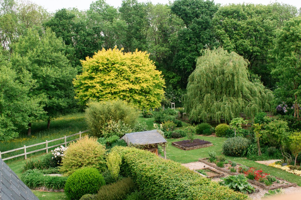 La diversité des essences, mêlant arbres centenaires, massifs fleuris, haies champêtres et prairies douces, crée une atmosphère à la fois vivante et paisible. Chaque recoin du domaine est pensé pour inviter à la contemplation et à la sérénité.
